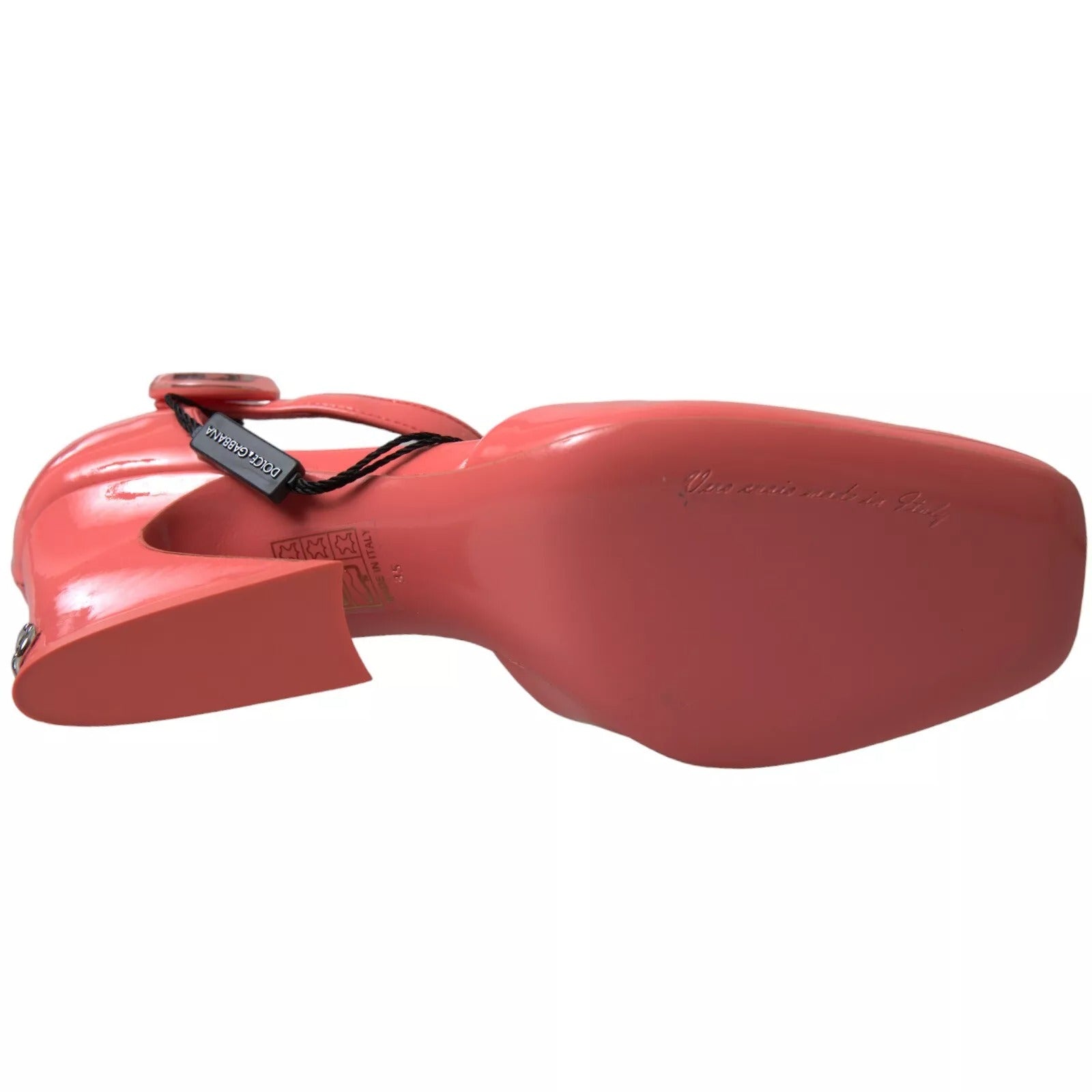 Gorgeous brand new with tags, 100% Authentic Dolce & Gabbana Peach calf leather heel sandals featuring logo plaque, square toe, branded insole, buckle-fastening ankle strap and mid sculpted heel.