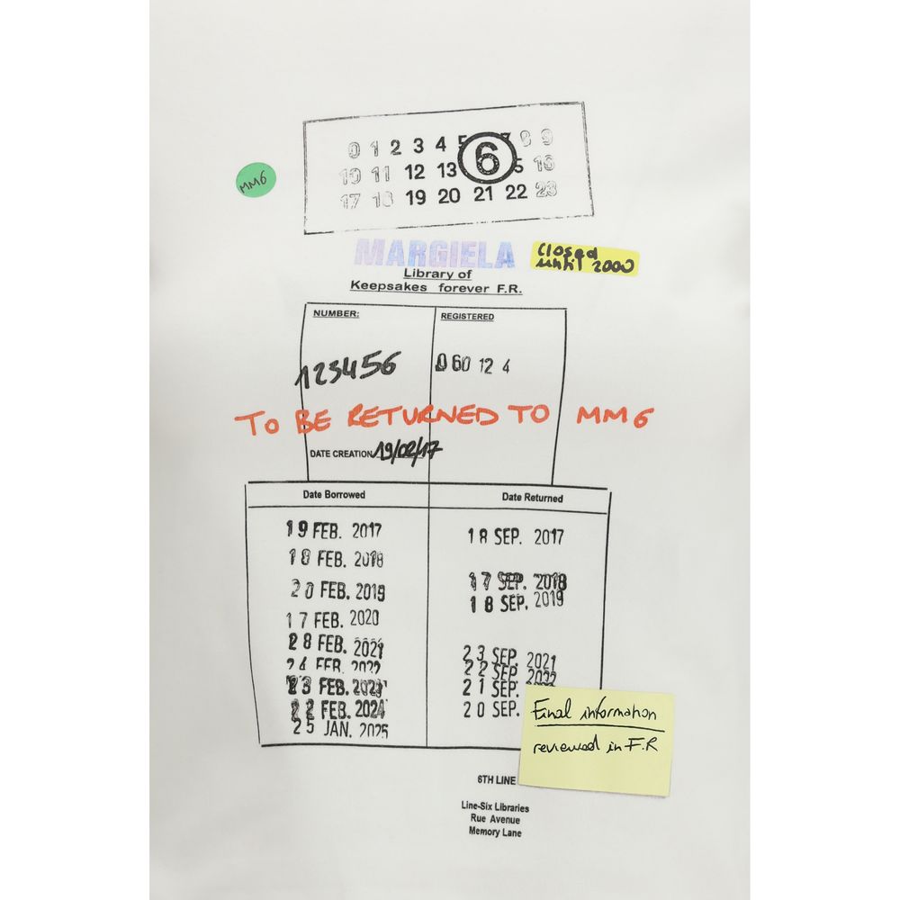 The cotton T-shirt by MM6 Maison Margiela stands out for its jacquard graphic print combining printed imagery and handwritten notes, inspired by old library books. The cropped cut and clean lines highlight the front graphic, while the signature white stitches at the back discreetly sign the piece. Crafted from comfortable stretch cotton, it features a classic crew neckline and short sleeves.